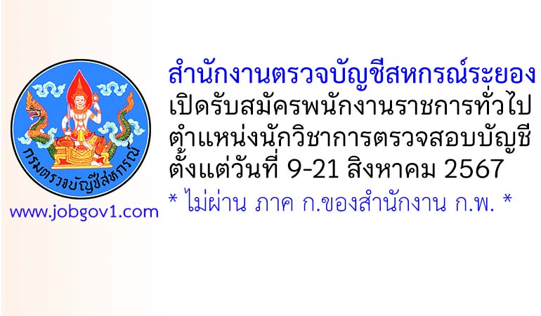 สำนักงานตรวจบัญชีสหกรณ์ระยอง รับสมัครพนักงานราชการทั่วไป ตำแหน่งนักวิชาการตรวจสอบบัญชี ตั้งแต่วันที่ 9-21 สิงหาคม 2567