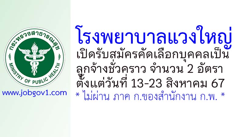 โรงพยาบาลแวงใหญ่ รับสมัครลูกจ้างชั่วคราว จำนวน 2 อัตรา ตั้งแต่วันที่ 13-23 สิงหาคม 2567
