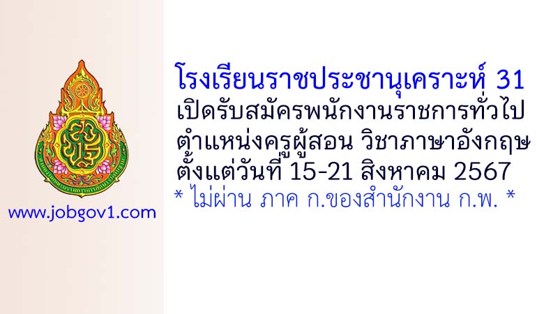 โรงเรียนราชประชานุเคราะห์ 31 รับสมัครพนักงานราชการทั่วไป ตำแหน่งครูผู้สอน กลุ่มวิชาภาษาอังกฤษ ตั้งแต่วันที่ 15-21 สิงหาคม 2567