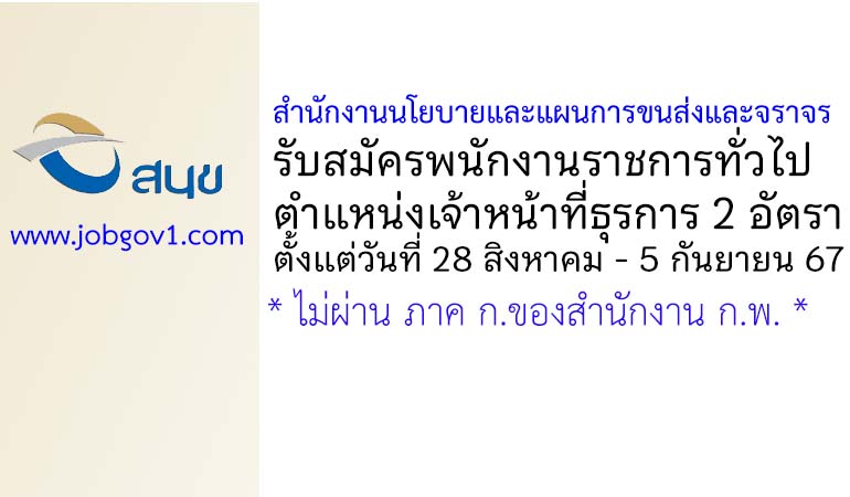 สำนักงานนโยบายและแผนการขนส่งและจราจร รับสมัครพนักงานราชการทั่วไป ตำแหน่งเจ้าหน้าที่ธุรการ 2 อัตรา ตั้งแต่วันที่ 28 สิงหาคม – 5 กันยายน 2567