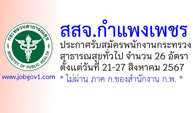 สสจ.กำแพงเพชร รับสมัครพนักงานกระทรวงสาธารณสุขทั่วไป 26 อัตรา ตั้งแต่วันที่ 21-27 สิงหาคม 2567