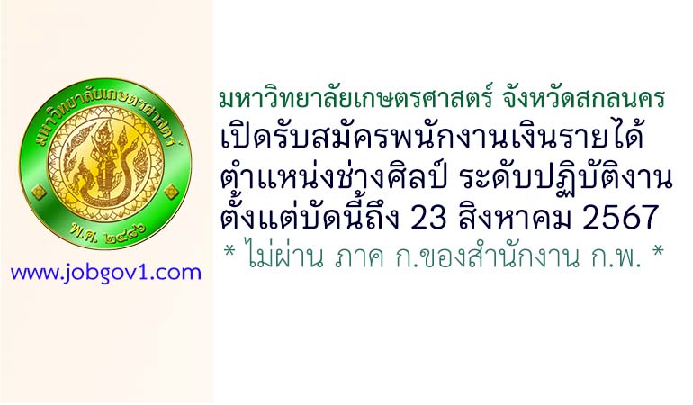 มหาวิทยาลัยเกษตรศาสตร์ จังหวัดสกลนคร รับสมัครตำแหน่งช่างศิลป์ ตั้งแต่บัดนี้ถึง 23 สิงหาคม 2567