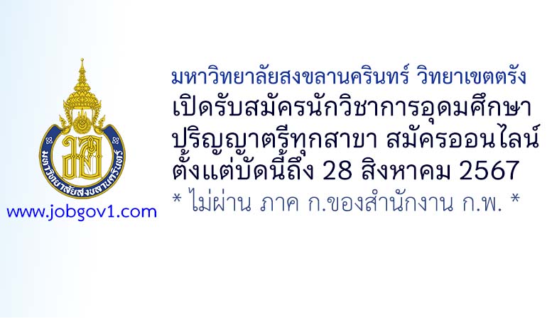 มหาวิทยาลัยสงขลานครินทร์ วิทยาเขตตรัง รับสมัครนักวิชาการอุดมศึกษา ตั้งแต่บัดนี้ถึง 28 สิงหาคม 2567