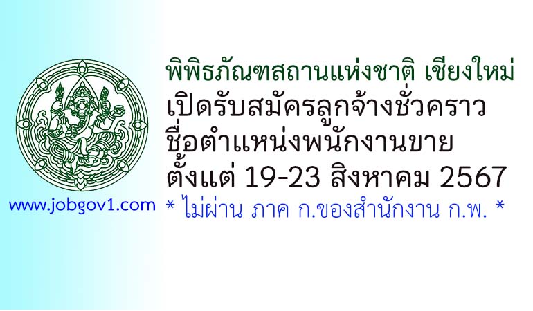 พิพิธภัณฑสถานแห่งชาติ เชียงใหม่ รับสมัครลูกจ้างชั่วคราว ตำแหน่งพนักงานขาย ตั้งแต่วันที่ 19-23 สิงหาคม 2567