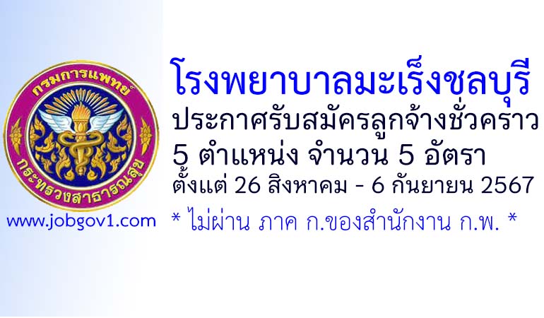 โรงพยาบาลมะเร็งชลบุรี รับสมัครลูกจ้างชั่วคราว 5 อัตรา ตั้งแต่ 26 สิงหาคม – 6 กันยายน 2567