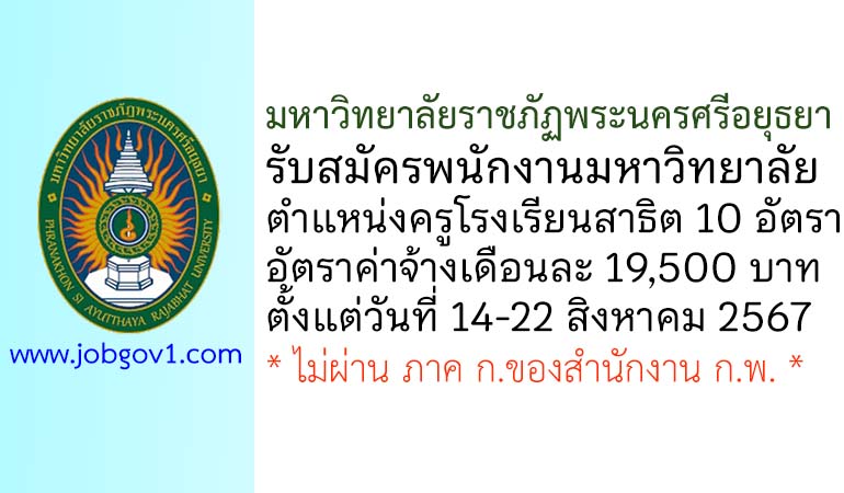 มหาวิทยาลัยราชภัฏพระนครศรีอยุธยา รับสมัครพนักงานมหาวิทยาลัย ตำแหน่งครูโรงเรียนสาธิต 10 อัตรา ตั้งแต่วันที่ 14-22 สิงหาคม 2567