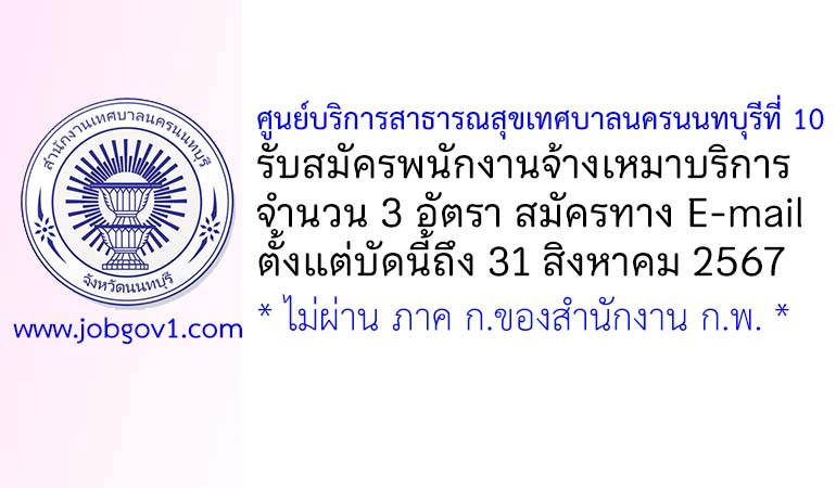 ศูนย์บริการสาธารณสุขเทศบาลนครนนทบุรีที่ 10 รับสมัครพนักงานจ้างเหมาบริการ 3 อัตรา ตั้งแต่บัดนี้ถึง 31 สิงหาคม 2567