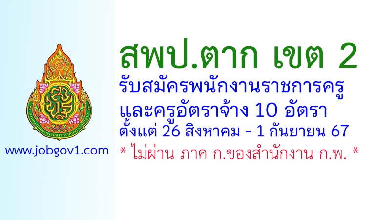 สพป.ตาก เขต 2 รับสมัครพนักงานราชการครู และครูอัตราจ้าง 10 อัตรา ตั้งแต่ 26 สิงหาคม – 1 กันยายน 2567