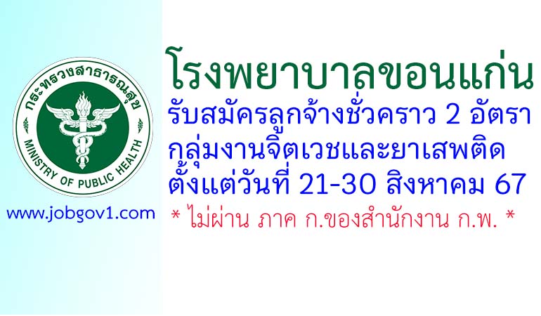 โรงพยาบาลขอนแก่น รับสมัครลูกจ้างชั่วคราว 2 อัตรา ตั้งแต่วันที่ 21-30 สิงหาคม 2567