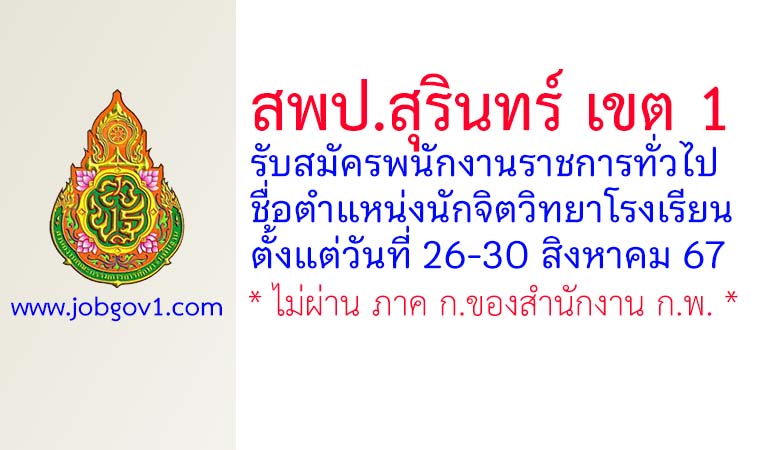สพป.สุรินทร์ เขต 1 รับสมัครพนักงานราชการทั่วไป ตำแหน่งนักจิตวิทยาโรงเรียน ตั้งแต่วันที่ 26-30 สิงหาคม 2567