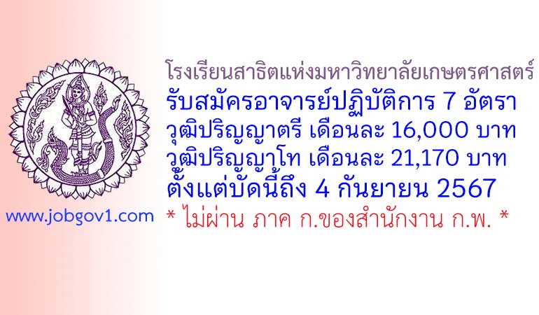 โรงเรียนสาธิตแห่งมหาวิทยาลัยเกษตรศาสตร์ รับสมัครอาจารย์ปฏิบัติการ 7 อัตรา ตั้งแต่บัดนี้ถึง 4 กันยายน 2567