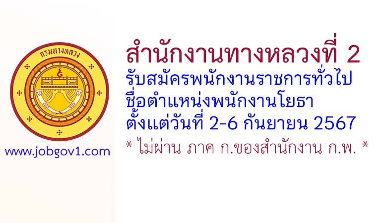 สำนักงานทางหลวงที่ 2 รับสมัครพนักงานราชการทั่วไป ตำแหน่งพนักงานโยธา ตั้งแต่วันที่ 2-6 กันยายน 2567