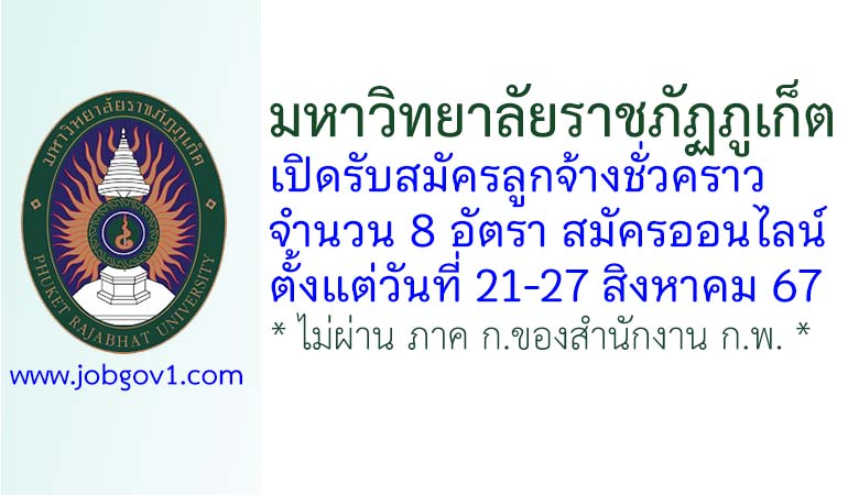 มหาวิทยาลัยราชภัฏภูเก็ต รับสมัครลูกจ้างชั่วคราว 8 อัตรา ตั้งแต่วันที่ 21-27 สิงหาคม 2567