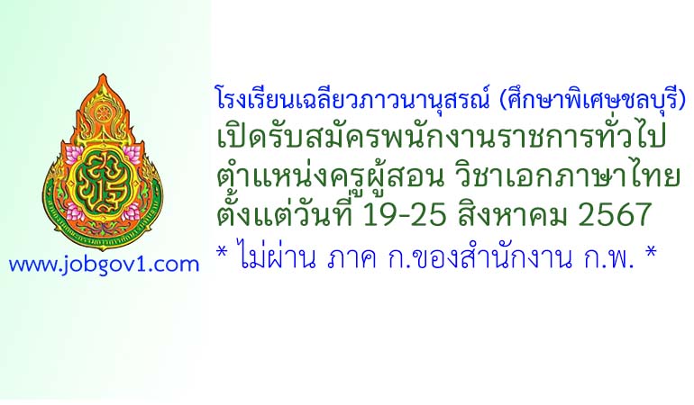 โรงเรียนเฉลียวภาวนานุสรณ์ (ศึกษาพิเศษชลบุรี) รับสมัครพนักงานราชการทั่วไป ตำแหน่งครูผู้สอน วิชาเอกภาษาไทย ตั้งแต่วันที่ 19-25 สิงหาคม 2567