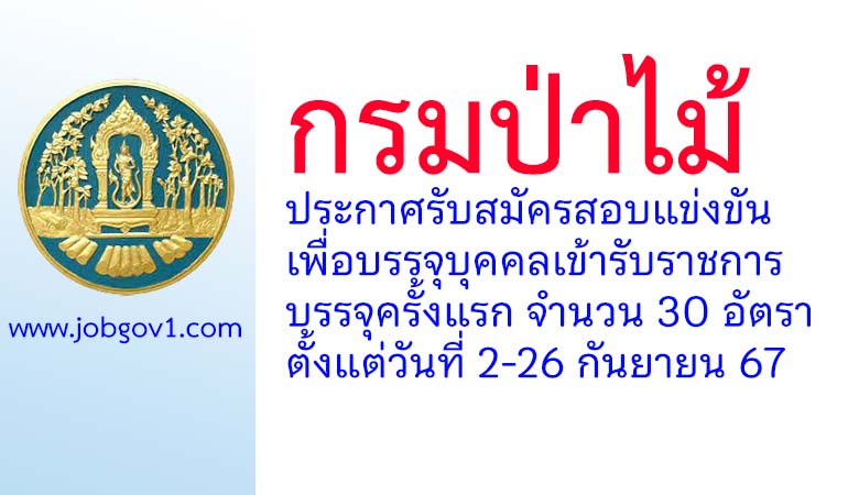กรมป่าไม้ รับสมัครสอบแข่งขันเพื่อบรรจุบุคคลเข้ารับราชการ ว่างครั้งแรก 30 อัตรา ตั้งแต่วันที่ 2-26 กันยายน 2567