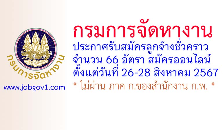 กรมการจัดหางาน รับสมัครลูกจ้างชั่วคราว 66 อัตรา ตั้งแต่วันที่ 26-28 สิงหาคม 2567