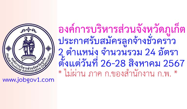 องค์การบริหารส่วนจังหวัดภูเก็ต รับสมัครลูกจ้างชั่วคราว 24 อัตรา ตั้งแต่วันที่ 26-28 สิงหาคม 2567