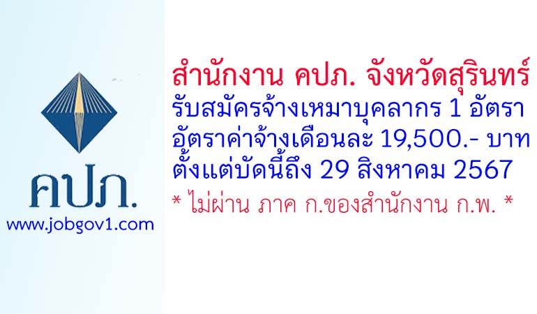 สำนักงาน คปภ. จังหวัดสุรินทร์ รับสมัครจ้างเหมาบุคลากร จำนวน 1 อัตรา ตั้งแต่วันที่ 21-29 สิงหาคม 2567