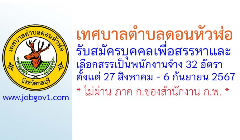 เทศบาลตำบลดอนหัวฬ่อ รับสมัครบุคคลเพื่อสรรหาและเลือกสรรเป็นพนักงานจ้าง 32 อัตรา ตั้งแต่ 27 สิงหาคม – 6 กันยายน 2567