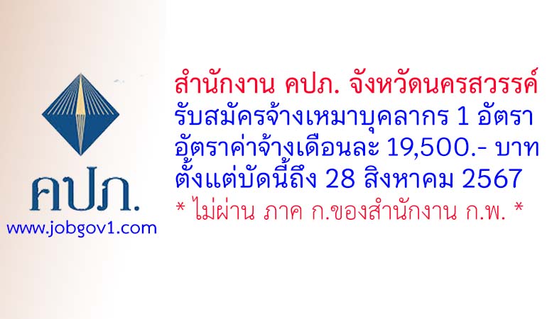 สำนักงาน คปภ. จังหวัดนครสวรรค์ รับสมัครจ้างเหมาบุคลากร จำนวน 1 อัตรา ตั้งแต่วันที่ 19-28 สิงหาคม 2567