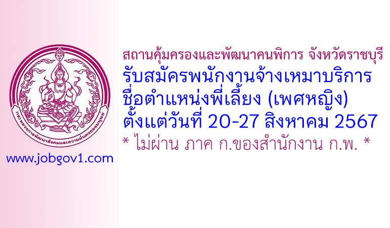 สถานคุ้มครองและพัฒนาคนพิการ จังหวัดราชบุรี รับสมัครพนักงานจ้างเหมาบริการ ตำแหน่งพี่เลี้ยง (เพศหญิง) ตั้งแต่วันที่ 20-27 สิงหาคม 2567