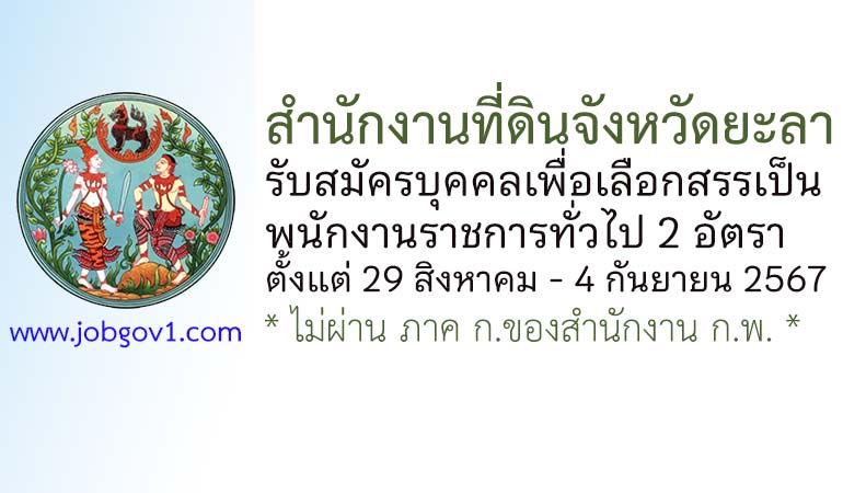 สำนักงานที่ดินจังหวัดยะลา รับสมัครบุคคลเพื่อเลือกสรรเป็นพนักงานราชการทั่วไป 2 อัตรา ตั้งแต่ 29 สิงหาคม – 4 กันยายน 2567