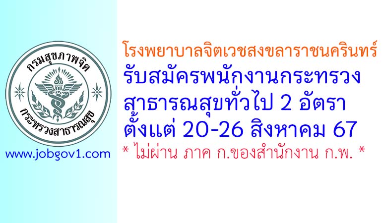 โรงพยาบาลจิตเวชสงขลาราชนครินทร์ รับสมัครพนักงานกระทรวงสาธารณสุขทั่วไป 2 อัตรา ตั้งแต่วันที่ 20-26 สิงหาคม 2567