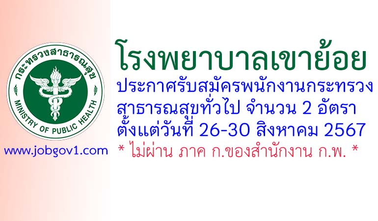 โรงพยาบาลเขาย้อย รับสมัครพนักงานกระทรวงสาธารณสุขทั่วไป 2 อัตรา ตั้งแต่วันที่ 26-30 สิงหาคม 2567