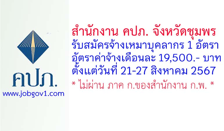 สำนักงาน คปภ. จังหวัดชุมพร รับสมัครจ้างเหมาบุคลากร จำนวน 1 อัตรา ตั้งแต่วันที่ 21-27 สิงหาคม 2567