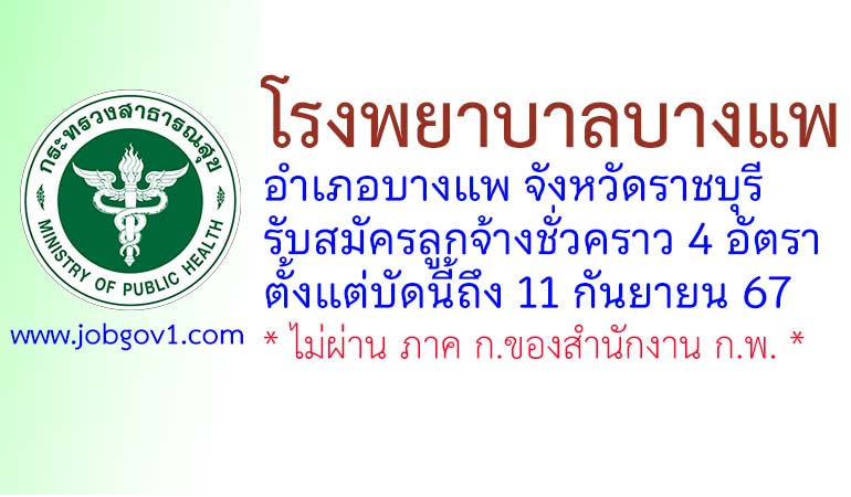 โรงพยาบาลบางแพ รับสมัครลูกจ้างชั่วคราว 4 อัตรา ตั้งแต่บัดนี้ถึง 11 กันยายน 2567