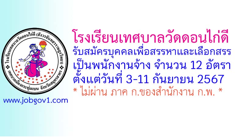 โรงเรียนเทศบาลวัดดอนไก่ดี รับสมัครพนักงานจ้างเหมาบริการ ตำแหน่งผู้ช่วยครู 18 อัตรา ตั้งแต่วันที่ 26-30 สิงหาคม 2567
