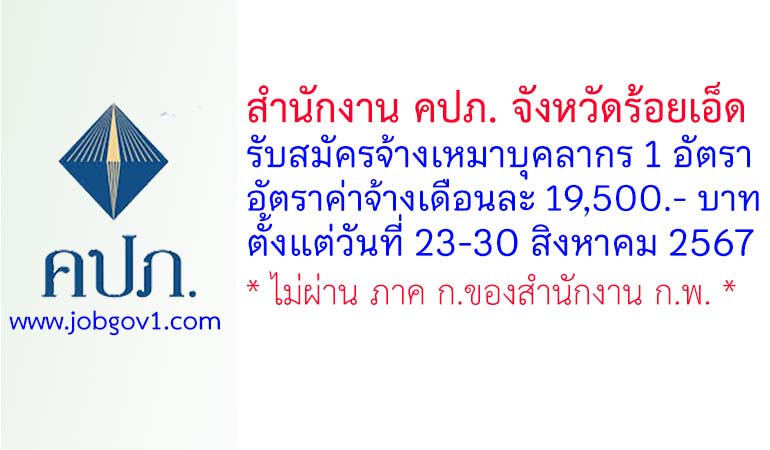 สำนักงาน คปภ. จังหวัดร้อยเอ็ด รับสมัครลูกจ้างเหมาบริการ จำนวน 1 อัตรา ตั้งแต่วันที่ 23-30 สิงหาคม 2567