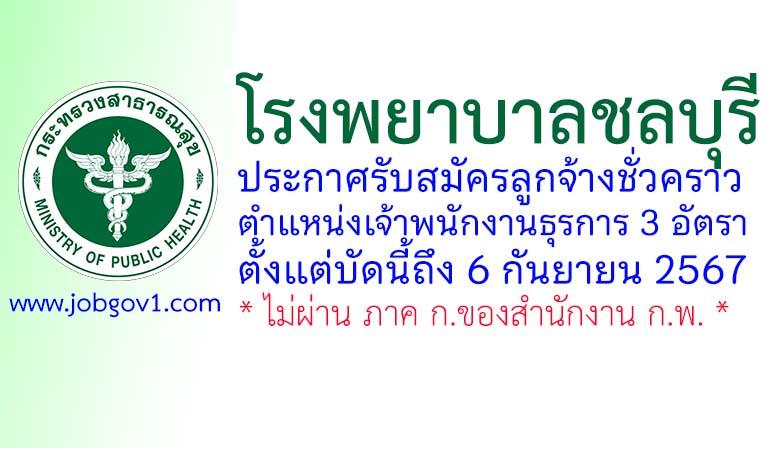 โรงพยาบาลชลบุรี รับสมัครลูกจ้างชั่วคราว ตำแหน่งเจ้าพนักงานธุรการ 3 อัตรา ตั้งแต่บัดนี้ถึง 6 กันยายน 2567
