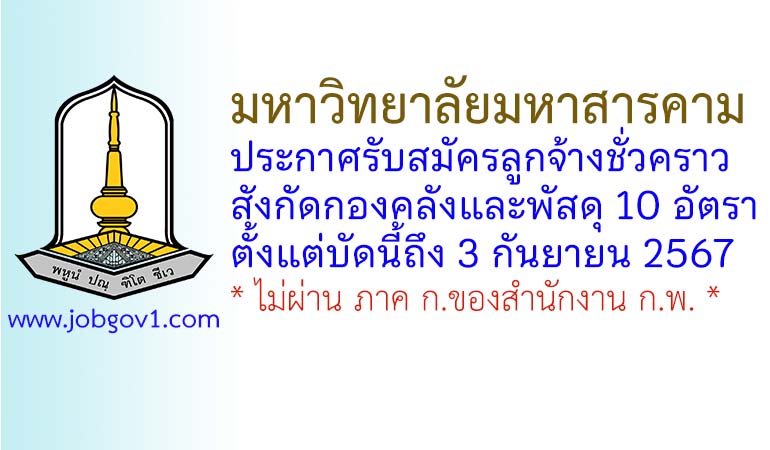 มหาวิทยาลัยมหาสารคาม รับสมัครลูกจ้างชั่วคราว สังกัดกองคลังและพัสดุ 10 อัตรา ตั้งแต่บัดนี้ถึง 3 กันยายน 2567