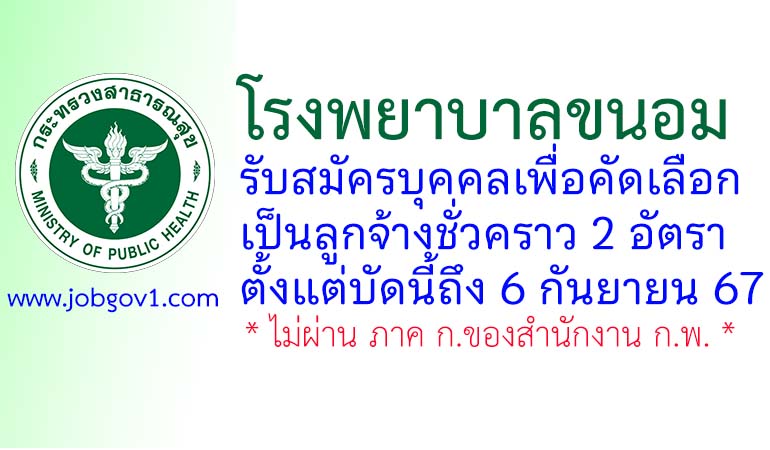 โรงพยาบาลขนอม รับสมัครลูกจ้างชั่วคราว 2 อัตรา ตั้งแต่บัดนี้ถึง 6 กันยายน 2567