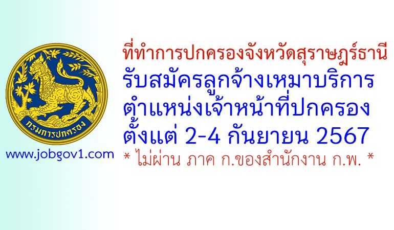 ที่ทำการปกครองจังหวัดสุราษฎร์ธานี รับสมัครลูกจ้างเหมาบริการ ตำแหน่งเจ้าหน้าที่ปกครอง ตั้งแต่วันที่ 2-4 กันยายน 2567