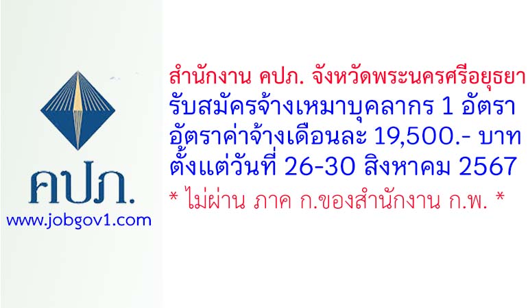 สำนักงาน คปภ. จังหวัดพระนครศรีอยุธยา รับสมัครลูกจ้างเหมาบริการ จำนวน 1 อัตรา ตั้งแต่วันที่ 26-30 สิงหาคม 2567