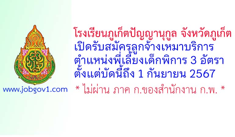 โรงเรียนภูเก็ตปัญญานุกูล จังหวัดภูเก็ต รับสมัครลูกจ้างเหมาบริการ ตำแหน่งพี่เลี้ยงเด็กพิการ 3 อัตรา ตั้งแต่บัดนี้ถึง 1 กันยายน 2567