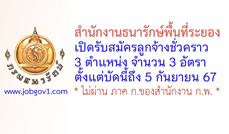 สำนักงานธนารักษ์พื้นที่ระยอง รับสมัครลูกจ้างชั่วครา 3 อัตรา ตั้งแต่บัดนี้ถึง 5 กันยายน 2567