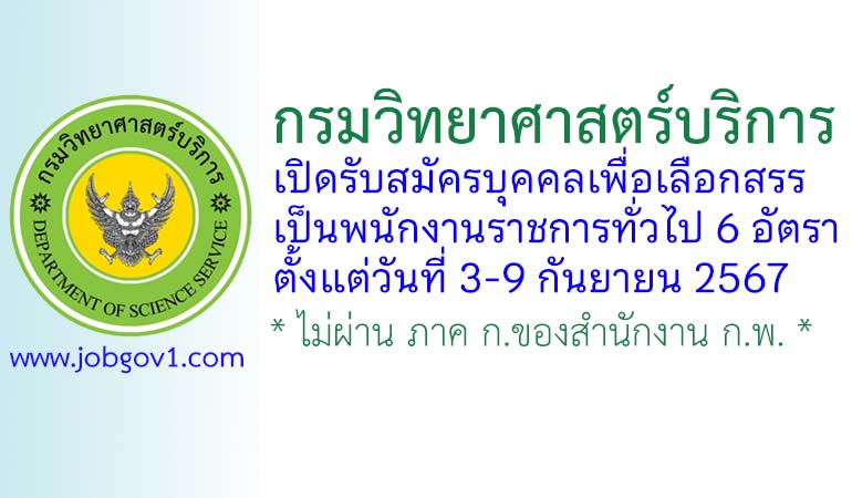 กรมวิทยาศาสตร์บริการ รับสมัครบุคคลเพื่อเลือกสรรเป็นพนักงานราชการทั่วไป 6 อัตรา ตั้งแต่วันที่ 3-9 กันยายน 2567