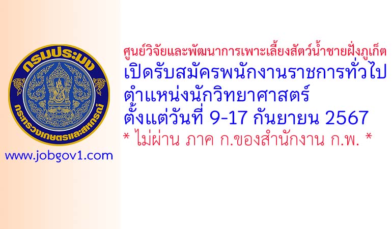 ศูนย์วิจัยและพัฒนาการเพาะเลี้ยงสัตว์น้ำชายฝั่งภูเก็ต รับสมัครพนักงานราชการทั่วไป ตำแหน่งนักวิทยาศาสตร์ ตั้งแต่วันที่ 9-17 กันยายน 2567