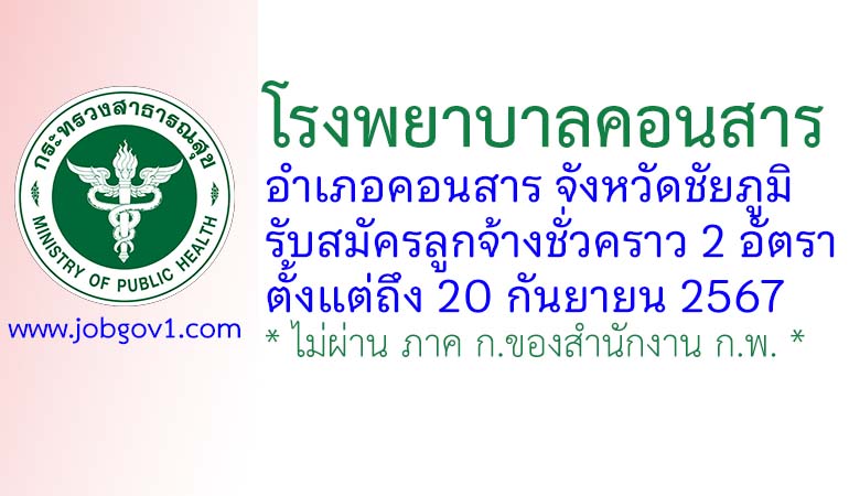 โรงพยาบาลคอนสาร รับสมัครลูกจ้างชั่วคราว 2 อัตรา ตั้งแต่ถึง 20 กันยายน 2567