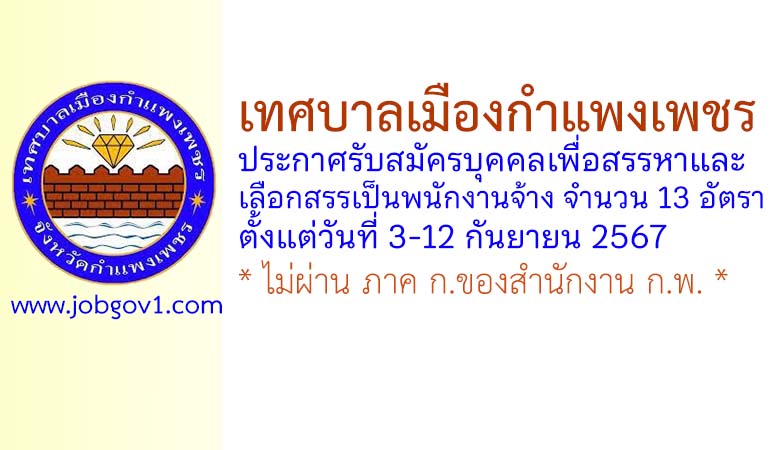 เทศบาลเมืองกำแพงเพชร รับสมัครบุคคลเพื่อการสรรหาและเลือกสรรเป็นพนักงานจ้าง 13 อัตรา ตั้งแต่วันที่ 3-12 กันยายน 2567