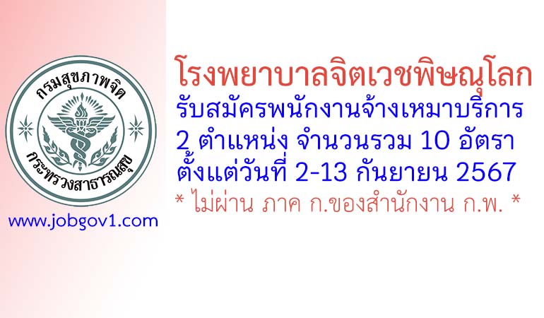โรงพยาบาลจิตเวชพิษณุโลก รับสมัครพนักงานจ้างเหมาบริการ 10 อัตรา ตั้งแต่วันที่ 2-13 กันยายน 2567