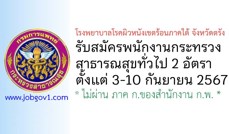 โรงพยาบาลโรคผิวหนังเขตร้อนภาคใต้ จังหวัดตรัง รับสมัครพนักงานกระทรวงสาธารณสุขทั่วไป 2 อัตรา ตั้งแต่วันที่ 3-10 กันยายน 2567