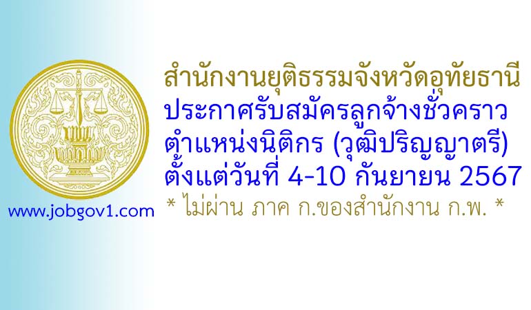 ประกาศสำนักงานยุติธรรมจังหวัดอุทัยธานี เรื่อง รับสมัครสอบคัดเลือกเพื่อจัดจ้างบุคคลเข้าปฏิบัติงานเป็นลูกจ้างชั่วคราว ตำแหน่งนิติกร