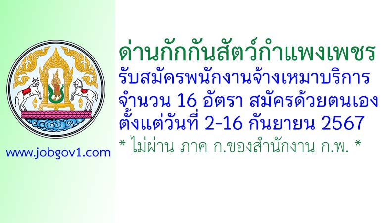 ด่านกักกันสัตว์กำแพงเพชร รับสมัครพนักงานจ้างเหมาบริการ 16 อัตรา ตั้งแต่วันที่ 2-16 กันยายน 2567