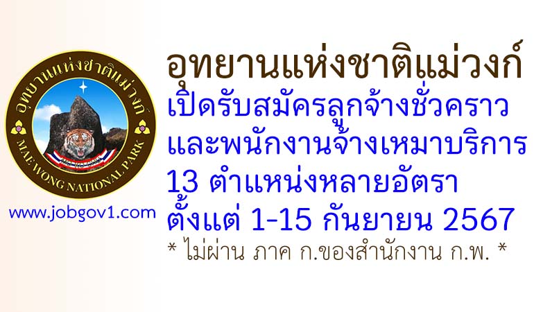 อุทยานแห่งชาติแม่วงก์ รับสมัครลูกจ้างชั่วคราว และพนักงานจ้างเหมาบริการ 13 ตำแหน่งหลายอัตรา ตั้งแต่วันที่ 1-15 กันยายน 2567