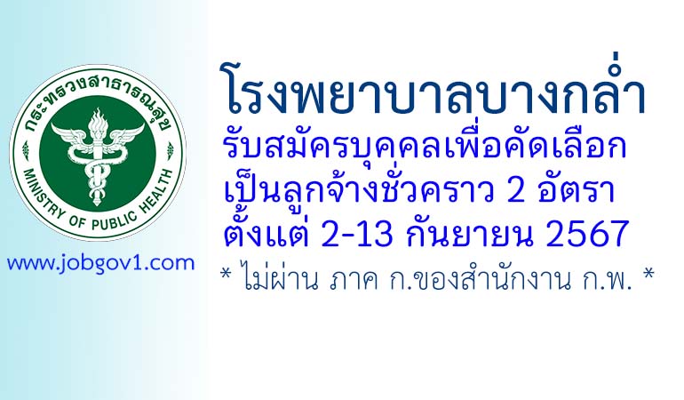 โรงพยาบาลบางกล่ำ รับสมัครลูกจ้างชั่วคราว 2 อัตรา ตั้งแต่วันที่ 2-13 กันยายน 2567