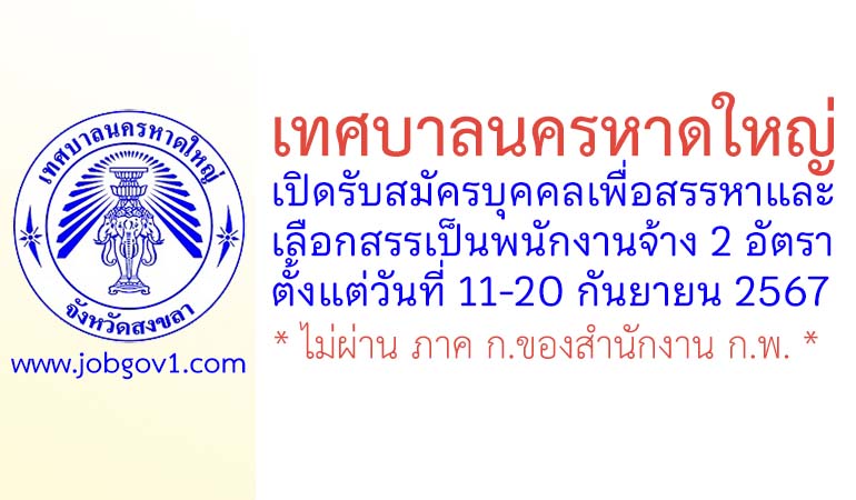 เทศบาลนครหาดใหญ่ รับสมัครบุคคลเพื่อสรรหาและเลือกสรรเป็นพนักงานจ้างทั่วไป 2 อัตรา ตั้งแต่วันที่ 11-20 กันยายน 2567